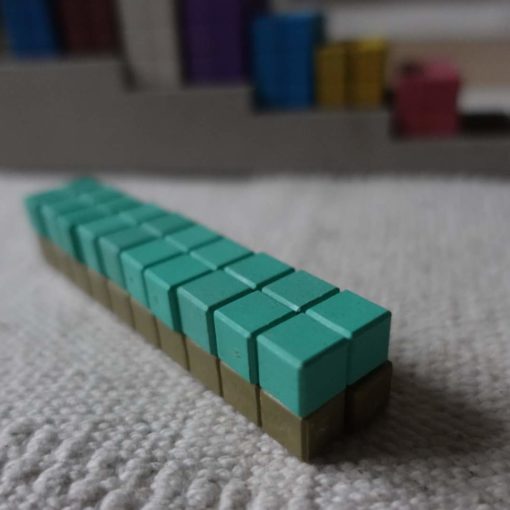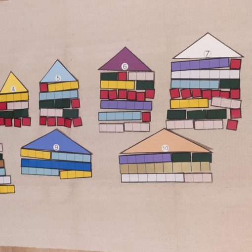 Jeśli będziecie chcieli wykonać samodzielnie ułamki, musicie zdecydować, czy będą podpisane, czy nie. Na pewno przy częściach drobniejszych niż części dziesiąte (których w tradycyjnej pomocy nie ma, ale często są dokładane przez nauczycieli), podpisy są niezbędne, inaczej elementy będą bardzo trudne do odróżnienia i porządkowania. Takie ułamki mogą być szczególnie przydatne do rozszerzania i skracania ułamków – część dzieci, które potrzebują dłuższego czasu zanim przejdą do abstrakcji, chętnie skorzysta z takiej rozszerzonej wersji pomocy. Natomiast w przypadku dzieci, które potrzebują pomocy jedynie do wprowadzenia i szybko dostrzegają matematyczne zależności, polecam wersję analogiczną do oryginalnej (części do dziesiątych, bez podpisów).