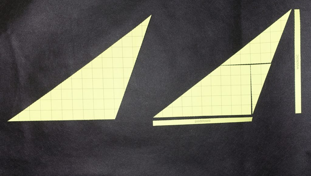 - Jeśli dziecko potrzebuje nadal pracy na konkrecie, doskonałym ćwiczeniem jest rysowanie trójkątów na kratkowanym papierze (można wydrukować korzystając z przygotowanego pliku) i wycinanie ich. Potem możemy rozcinać je na fragmenty w taki sposób, by złożyć prostokąty lub od razu obliczać pola.