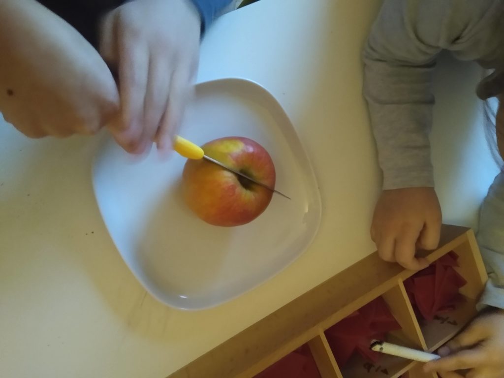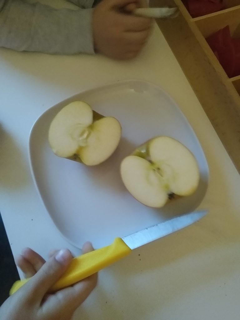 Wprowadzając ułamki bardzo lubię pokazywać ich związek z życiem – czasami po prostu potrzebujemy podzielić jedność. Możemy to zrobić choćby na przykładzie jabłka, rozmawiając z dzieckiem o tym, co możemy zrobić, jeśli mamy tylko jedno jabłko, a kilka osób chciałoby je zjeść. Pomysłów może być dużo, ale jest spora szansa, że jednym z nich będzie podzielenie jabłka. Warto zaangażować zmysły i poprosić dziecko, żeby to zrobiło! A kiedy już skosztujemy jabłko, możemy powiedzieć o tym, że ułamki do tego właśnie służą – mają pozwolić nam na opisywanie liczbą nie tylko całości, ale też jej części. W matematyce podział przeprowadzamy na jednakowe części – w rzeczywistości jest to w zasadzie niemożliwe do wykonania (ale możemy się starać, dbając o dużą precyzję).