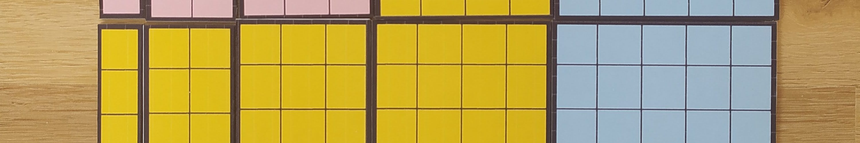 Jest niezwykle prosta – są to 100 prostokątnych tabliczek o wymiarach odpowiadającym tabliczce mnożenia: od 1×1 aż do 10×10. Kolor tabliczki jest zgodny z dłuższym bokiem (a dokładniej “nie krótszym” bokiem, bo mamy też kwadraty) i jego kolorem w kolorowych liczbach. Na przykład tabliczka 9×7 ma taki kolor jak liczba 9 w kolorowych liczbach, czyli granatowy.